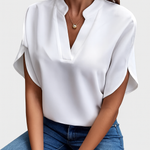 Découvrez le chemisier à col en V Erica™, votre nouveau pilier de garde-robe qui allie parfaitement sophistication et confort. Ce chemisier présente un design flatteur à col en V qui met en valeur votre décolleté tout en ajoutant une touche d'élégance intemporelle. Parfait pour ceux qui apprécient le style autant que le confort, c'en est un élément essentiel pour toute occasion.