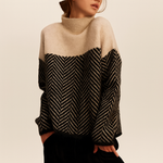 Confortable, raffiné et irrésistiblement doux, ce col roulé en maille finement torsadée est un véritable bijou pour votre garde-robe. Sa texture luxueuse caresse délicatement la peau, tandis que ses élégants détails en chevrons tricotés à la main apportent une touche sophistiquée. Idéal pour rester au chaud tout en affichant un style intemporel, du bureau aux sorties en ville.
